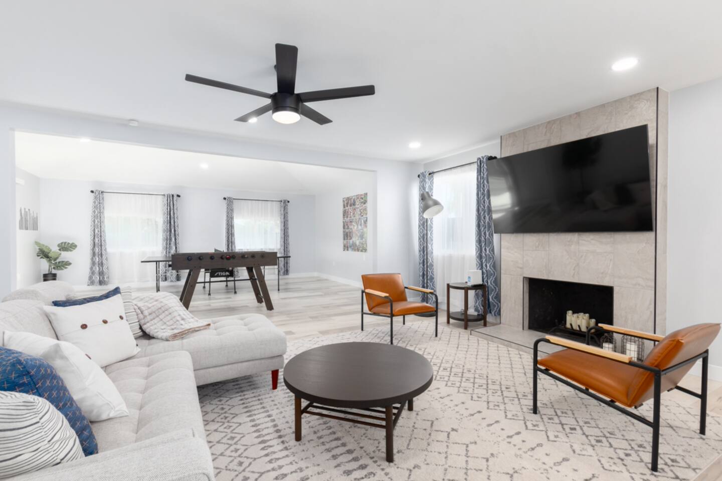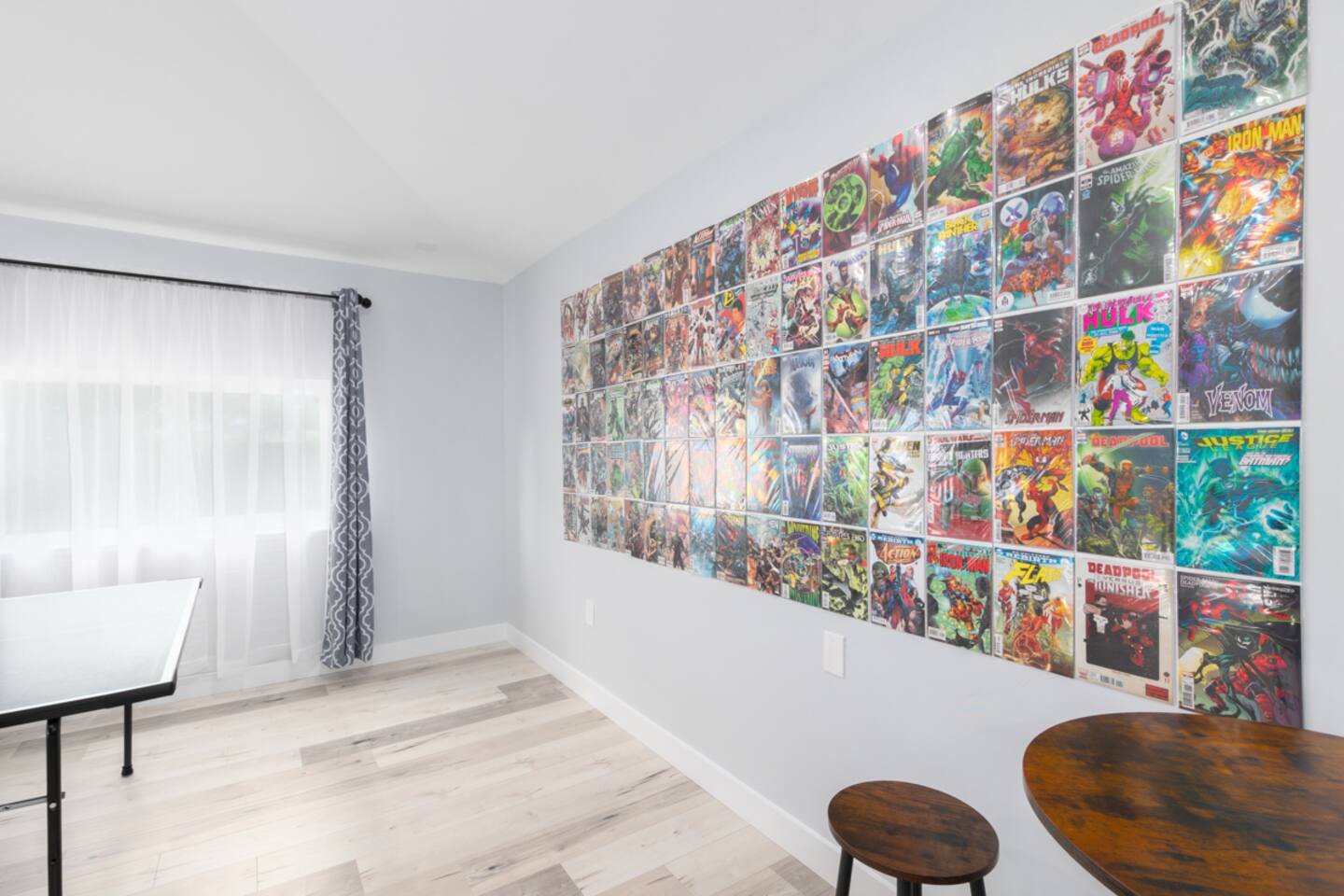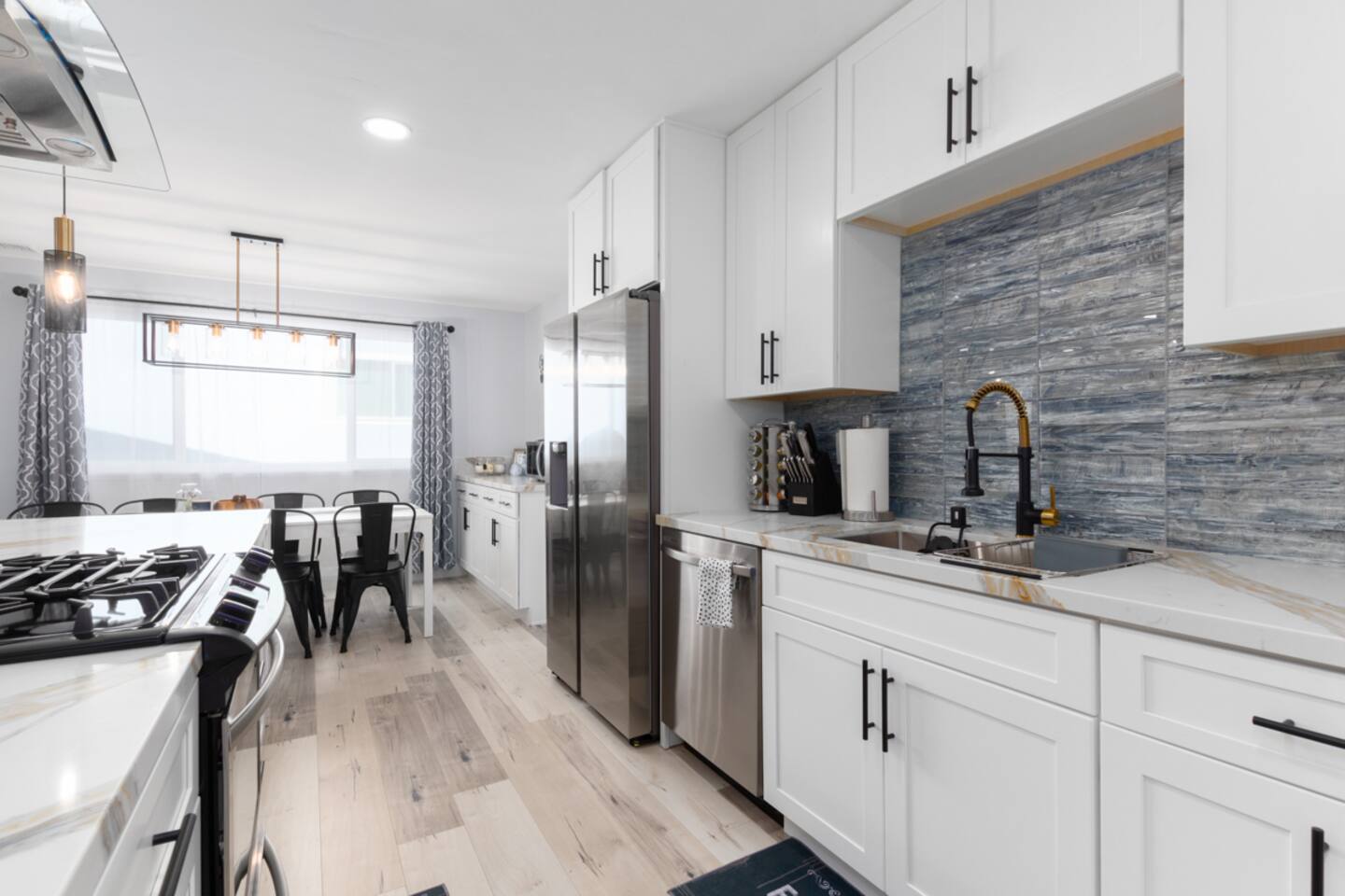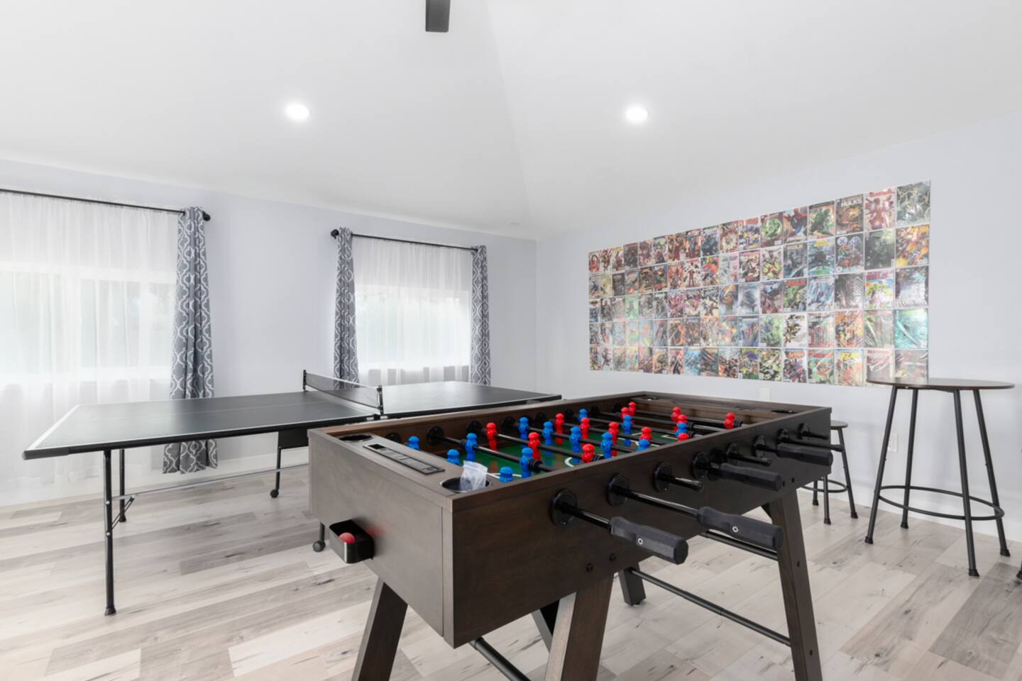 KEY FEATURES ✔ 3 bedrooms w/ blackout curtains (3 Queen (one is ensuite), 4 floor mattress) ✔ Game room w/ ping pong + foosball table ✔ 2 bathrooms ✔ Pet-friendly ✔ High speed internet + dedicated workspace ✔ Fully Equipped Kitchen ✔ Playpen for baby/small child ✔ BBQ Grill ✔ Washer + Dryer ✔ SMART TVs in all rooms with free NETFLIX & HBOMAX ✔ Beach equipment ✔ Board games ✔ Parking for 2 cars BEDROOMS + BATHROOMS Bedrooms This home features three cozy bedrooms, each with a 12" queen memory foam mattress for a restful night's sleep. For additional guests, there are two 6" and two 4" queen memory foam floor mattresses, which can be set up in the bedrooms or game room. You can also stack the floor mattresses for extra comfort, creating a 10" sleeping surface. Each bedroom is equipped with a wall-mounted Smart TV, offering free access to Netflix and HBO Max. Nightstands in two of the bedrooms include convenient USB charging ports. A Pack-n-Play/playard is available for families traveling with little ones. Workspace One bedroom features a study table and chair, perfect for remote work or studying. There is also an additional folding desk available for co-working or shared study sessions. Bathrooms Both bathrooms are equipped with luxurious rain shower heads for a spa-like experience. We provide complimentary Eco Botanics White Tea and Honey body wash, shampoo, and conditioner, all of which are gluten-free, paraben-free, and cruelty-free. Each bathroom is also stocked with hair dryers and makeup towels for your convenience. **Please note: The master bathroom door is only 25 inches wide.** KITCHEN & DINING This stunning kitchen is fully equipped with everything you need to prepare a family meal, including a wide selection of pots, pans, and a variety of cooking spices. You'll find essential appliances such as a microwave oven, toaster oven, crockpot, rice cooker, blender, mixer, electric kettle, and a coffee maker with complimentary coffee, creamer, sugar, sweeteners, and tea. Kid-friendly, shatter-proof plates, cups, and utensils are also readily available. The sleek dining table seats 8 comfortably, with an additional four height-adjustable bar stools at the spacious kitchen counter. For families with little ones, a free Evenflo 4-in-1 convertible high chair is always available for use. LOUNGE SPACES & GAME ROOM The living room is a cozy entertainment hub, featuring a 75” Samsung Smart TV with free Netflix and HBO Max, perfect for movie nights or catching up on your favorite shows. With 1000 Mbps high-speed Wi-Fi, staying connected is effortless. The space also includes an Ecobee thermostat to keep the temperature just right. For family fun, we provide classic games and toys for little ones. The game room adds a competitive edge to your stay with a foosball table, ping pong table, and an electronic dart board, offering hours of fun for guests of all ages. OUTSIDE SPACE Backyard: Relax in a private, fenced-in backyard perfect for the whole family. Enjoy outdoor dining and fire up the gas BBQ grill. While you cook your famous steak, your kids can play safely, and your pets can run freely in the spacious yard. Garage: The garage is equipped with a washer and dryer, complete with complimentary detergent and dryer sheets for your convenience. You can park in the garage, the driveway, or take advantage of the ample street parking available. Beach Accessories: Head to Pacific Beach fully prepared! The garage is stocked with beach essentials, including beach chairs, umbrellas, a beach blanket, toys, and a folding wagon—everything you need for a fun day in the sun. Book Now & Let Us Take Care Of You In San Diego! Registration number: STR-01297L, 642258